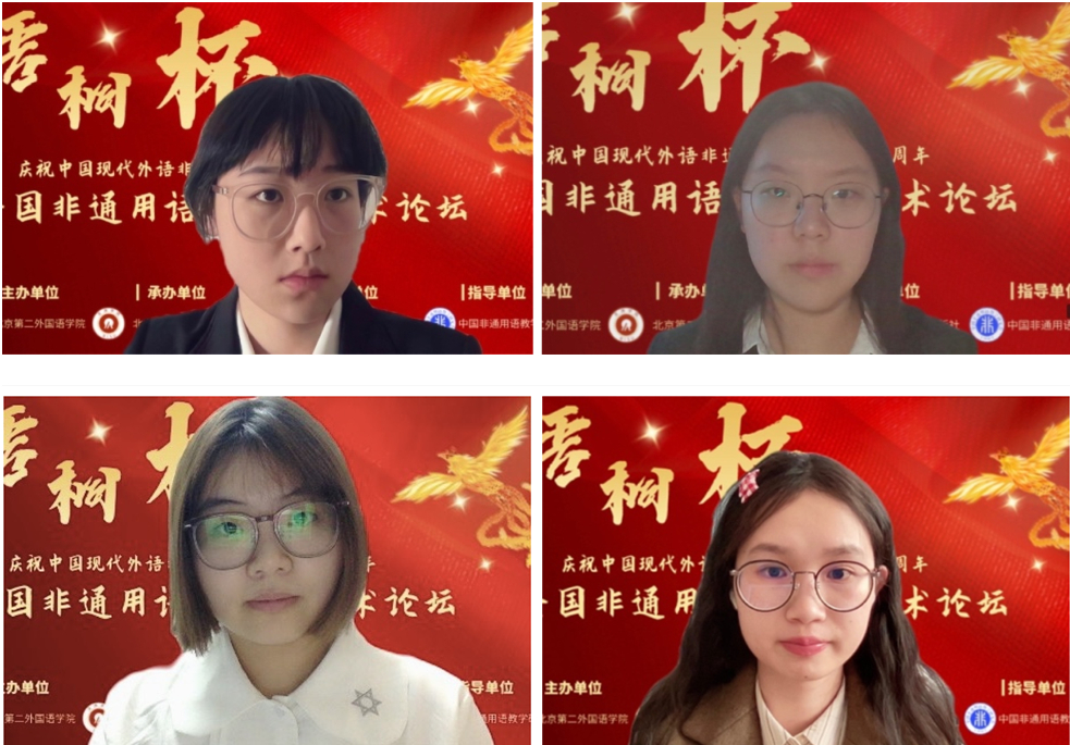 本次论坛以庆祝中国现代外语非通用语高等教育80周年为契机举办,共收到来自14所高校的170多篇论文,涉及22个语种。经评审专家认真评选,本科生组共有来自13所高校的20名/组同学、研究生组共有9所高校的16名/组同学入围论坛决赛。决赛当天,入选的个人或团队在线上向评委老师进行成果展示,阐述论文的写作思路和写作方法,相关领域专家根据其现场表现情况进行最终评审。最终,本科生组和研究生组各评选出一等奖1名/组、二等奖2名/组、三等奖4名/组和优秀奖多名/组。