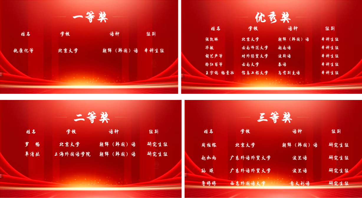 朝(韩)语系学生一直积极参加国际级、国家级、校级、院级比赛,在各类比赛中屡获佳绩,充分体现了本系的学科实力与育人水平。在第二届“梧桐杯”全国非通用语大学生(研究生)学术论坛中,同学们取得的优异成绩既离不开个人努力,更离不开王丹老师和琴知雅老师的悉心指导与各位专业老师的重视与支持。期待朝(韩)语系在学生培养中再结硕果,在各类学科活动与竞赛中再创佳绩!