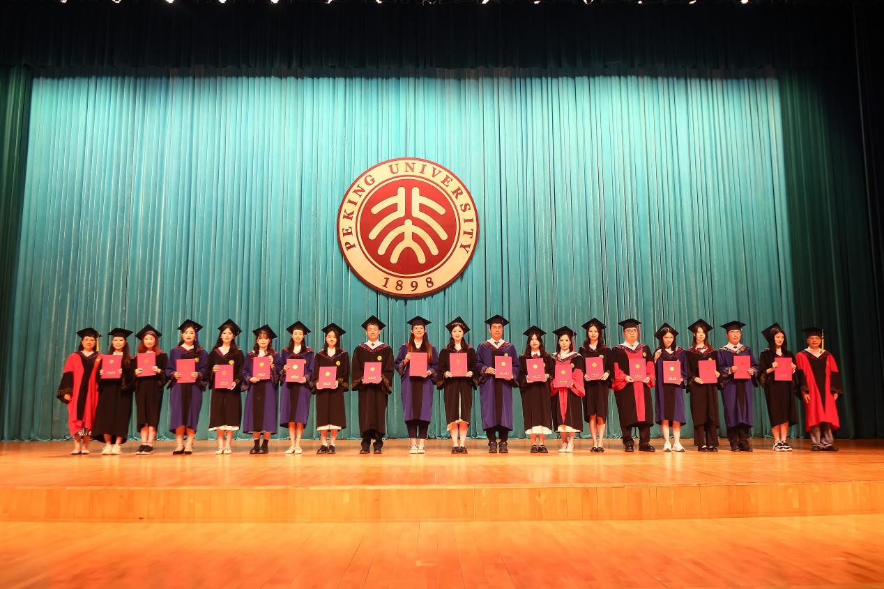 院长陈明、院党委书记李淑静为北京市优秀毕业生颁发奖励证书,副院长吴杰伟、王丹老师为北京大学本科生、研究生优秀毕业生代表颁发奖励证书。