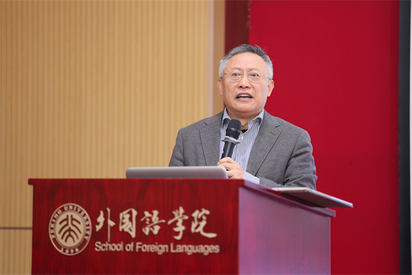 北京大学中文系教授、中国比较文学学会会长张辉和北京大学哲学系教授、北京大学元培学院院长李猛做特邀报告。张辉以《乡愁与超越乡愁:荷尔德林、奥尔巴赫与塔可夫斯基的片段》为题作报告。他从荷尔德林的诗篇出发,借海德格尔之阐释,融合雨果的“三种境界”与塔可夫斯基电影《乡愁》的片段,深刻剖析了“乡愁”在现代世界与文学研究中的丰富内涵,勉励师生以世界为异乡,追寻文化本源,通过外国文学研究探寻最本真的自我。李猛则以《激情的理性:现代哲学的一个隐秘章节,以及为什么文学不是哲学》为题,从辛格著作谈起,梳理了人类对激情理解的演变历程,从柏拉图到笛卡尔,再到斯宾诺莎、休谟,展现了哲学与文学在构建世界理解上的不同路径。他强调,哲学构建理想而往往缺失自我,文学则以真实丰盈现实,在理解世界的层面上形成对照。
