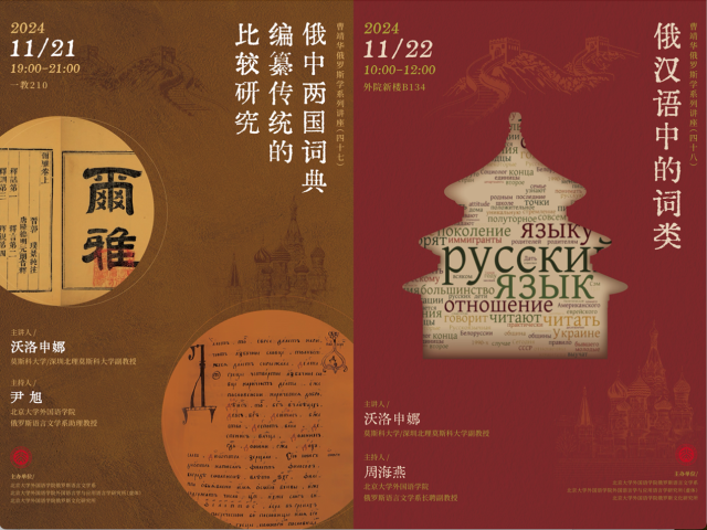 2024年11月21-22日,俄罗斯莫斯科大学/深圳北理莫斯科大学沃洛申娜副教授(О.А. Волошина)应邀在北京大学举办两场讲座,主题分别为“俄中两国词典编纂传统的比较传统”和“俄汉语中的词类”。本次讲座系“曹靖华俄罗斯学系列讲座”第47讲和第48讲,由乐鱼·体育俄语系、外国语言学及应用语言学研究所(虚体)、俄罗斯文化研究所(虚体)主办。北京大学俄语系教师、博士后以及硕博研究生聆听讲座。