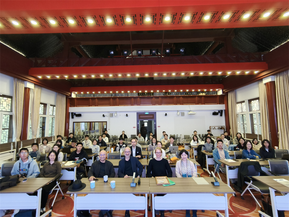 11月7日,首场讲座在民主楼208室拉开帷幕。马尔图斯与施托金格教授联袂作“今日经典如何可能——经典生成与文学研究实践”主题报告,德语系主任、长聘副教授胡蔚老师主持。两位教授首先阐明了“经典”或曰“正典”(Kanon)在当前西方社会政治中面临的挑战,价值判断日益成为争论焦点。但在具体的教学、阅读、出版等文学实践领域,经典依旧具有现实意义。数字时代,流行文化与异质话语逐步进入经典论辩的延伸领域。两位教授强调,文学经典需平衡艺术追求与大众趣味、审美自律与市场需求,应鼓励学术与教学中对文学经典不断进行审视与创新,以适应当前数字化社会的需求。在问答与讨论环节,两位教授与听众就学科史对于经典研习的意义、19世纪文学在中国的经典化、经典背后的阐释权威问题、评价标准的多元化与评价机制的去中心化等问题进行了深入探讨。