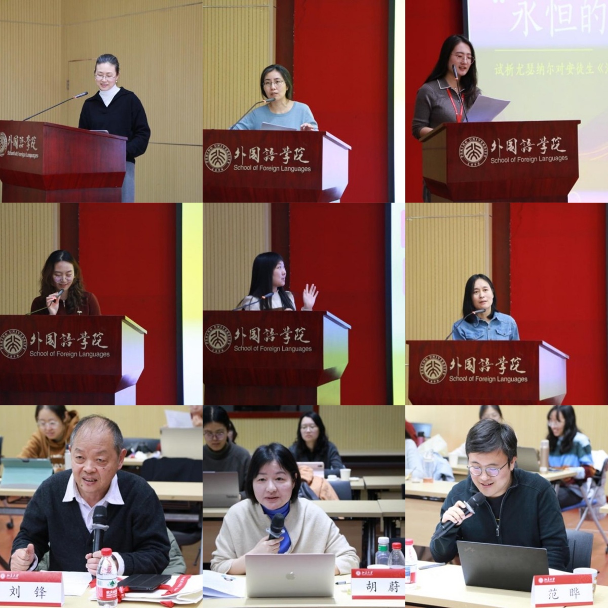 16日上午,研讨会第三场次。围绕“童话&当下:文本的跨媒介呈现与历史传承”,法语系副教授朱晓洁、英语系副教授黄淳和法语系博士生孟瑶依次就《美女与野兽》的电影改编、童话《金河王》的视觉主题和《海的女儿》的戏剧呈现分享研究成果。“童话&历史:永不止息的变迁”主题发言中,英语系博士生冯莉雯、英语系博士生杨佳鑫和修立梅老师分别就《白雪公主》的三个当代文学改写进行了分析讨论。在点评环节,《国外文学》主编、英语系教授刘锋指出,分析探讨文字与视听之间的张力,正是当下跨媒介研究的热点问题;德语系长聘副教授胡蔚强调时代话语、民族认知和读者接受等因素于编者和改写者而言的重要性;西班牙语系副教授范晔则认为研究后现代的神话与童话改写,有助于思考文学作品中的二元对立问题。