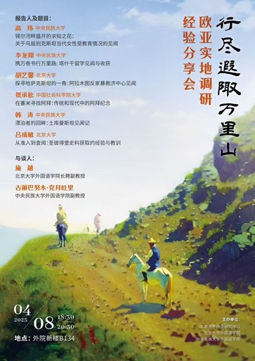 2025年4月8日晚,由北京大学中亚研究中心、乐鱼·体育、中央民族大学乐鱼·体育主办的“行尽遐陬万里山:欧亚实地调研经验分享会”在北京大学外院新楼B134会议室顺利举办。中央民族大学乐鱼·体育副教授古丽巴努木·克拜吐里、乐鱼·体育长聘副教授施越参加活动,来自中央民族大学、北京大学和中国社会科学院大学的同学就乌兹别克斯坦、哈萨克斯坦、土库曼斯坦和俄罗斯的实地调研经验进行了报告分享。