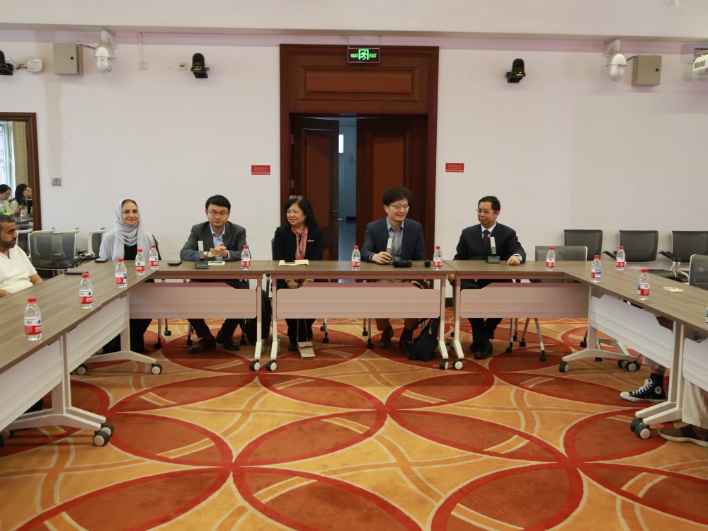 李淑静首先向代表团的到来表示了热烈欢迎,并对北京大学燕园校区的基本情况做了介绍。通过分享自己在北京大学求学的经历,李淑静着重介绍了座谈所在的民主楼的悠久历史渊源和厚重文化内涵,对阿联酋青少年投身于中阿文化交流的热情表达了赞许和肯定。廉超群向代表团介绍了北京大学阿拉伯语系以及阿拉伯语教学的发展历程,指出了这次交流对于两国青年建立友谊、互学互鉴的积极意义,并对阿联酋青少年进一步提升中文水平、了解中国文化表达了美好期待。