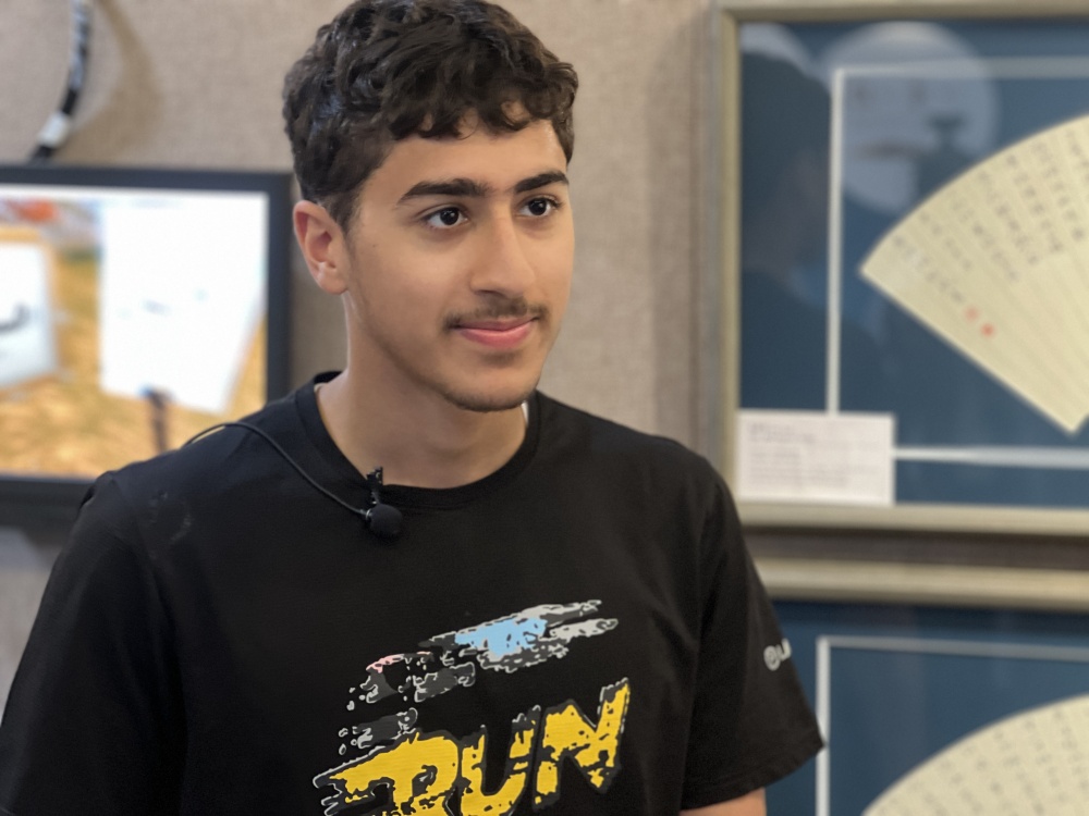 代表团学生执笔挥毫、阿联酋学生哈姆丹接受采访