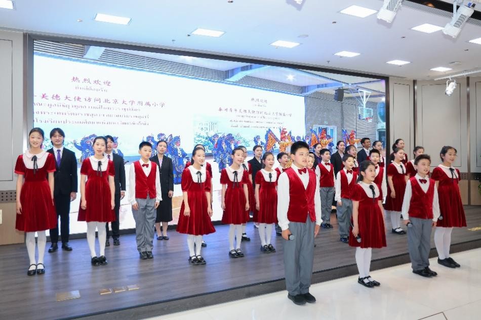 生日午宴是北京大学为此次诗琳通公主到访用心准备的特别活动。泰语专业师生积极承担了本次午宴的部分筹备和表演工作。在2月上旬获悉活动安排后,硕士生施小艺、徐莹盈、罗燕三位同学主动报名承担任务,在老师的悉心把关下,高效高质完成了文案编辑和翻译任务。徐莹盈同学还有幸参与了午宴大合唱节目,与中泰学生一起演唱了广为人知的歌曲《黎明》。她说:“当站在舞台上,看到公主用手机记录下我们的演出瞬间时,心中涌起的自豪和满足感难以言表。”