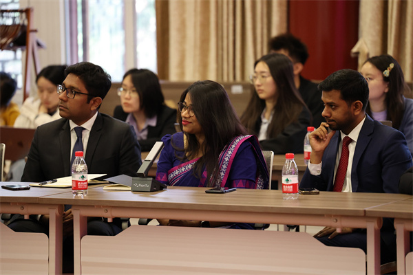在学术交流环节,王旭副教授从中国学者的视角出发做专题讲座,深入分析了当前南亚地区形势及地缘战略格局变化,以中国的发展经验为主要切口,剖析孟加拉国在南亚地区形势和地缘政治中所处的位置与发展面临的结构性困境。他指出,在国际局势动荡变动与地缘政治风云诡谲的当下,中国“以人民为中心”的发展理念和“中国式现代化”的宝贵经验是“全球南方国家”应对变动中的世界经济、政治格局的重要抓手,并认为这一经验可为孟加拉国推进去殖民议程、实现现代化发展提供镜鉴。讲座内容得到了孟方代表团成员的高度认可。在互动环节,孟方代表就人工智能时代的发展机遇与挑战、高校在政府决策中的作用等议题与现场中方学者展开深入交流。王旭副教授指出,中国将坚持科技平权原则,合理运用AI技术改善民生;同时强调,北京大学作为中国高等教育的重要代表,始终致力于开展长期、动态的学术研究,为国家发展提供智力支持。
