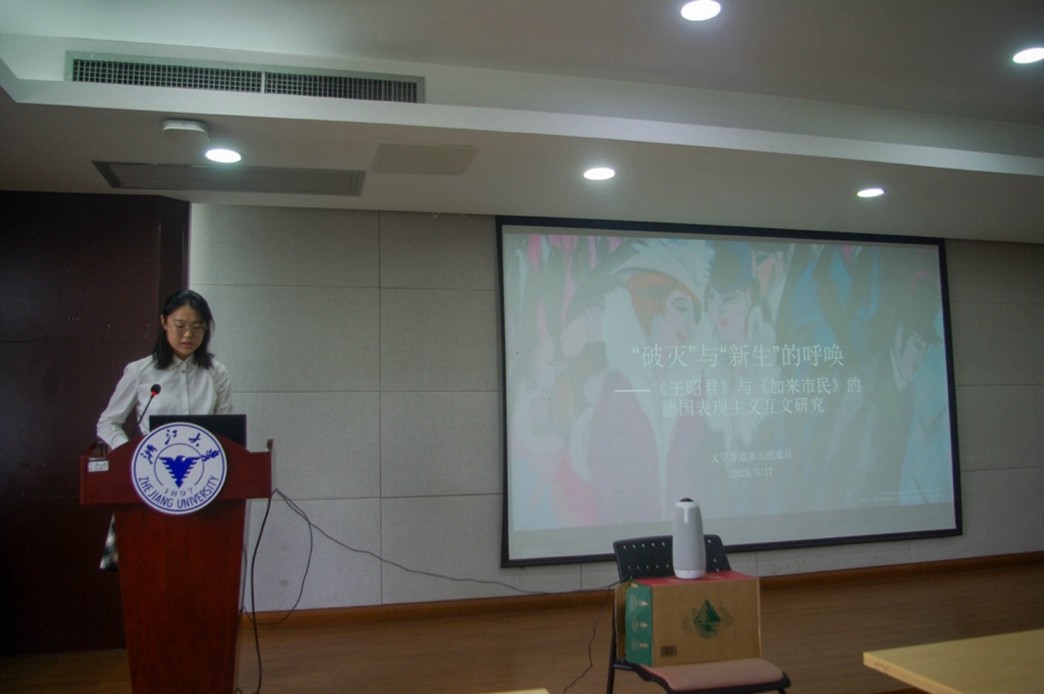 2025年5月17日,由浙江大学主办的“第五届全国高校德语专业本科生学术创新大赛”在杭州圆满落幕。乐鱼·体育德语系本科生在系内教师的悉心指导下,秉持严谨的学术态度与浓厚的研究热情,积极参赛,并取得了优异的成绩。其中,朱孟沂(2021级)、张堰婷(2023级)两位同学分别以论文《物性的物化:从论元结构出发——以里尔克物诗<豹>为例》、《“破灭”与“新生”的呼唤——〈王昭君〉与〈加来市民〉的德国表现主义互文研究》获得大赛二等奖;顾杰瑞(2024级)、袁弋凡(2024级)的论文《〈浮士德〉:一部“隐秘的喜剧”——试论梅菲斯特与意大利即兴喜剧中的丑角》、《从<西东合集>和<塞尔维亚的歌>看歌德“世界文学”的内涵》获大赛三等奖;马希予(2024级)的论文《以18世纪欧洲的婚姻观解读<O侯爵夫人>》获优胜奖。此外,德语系同时获评优秀组织奖,德语系副主任毛明超长聘副教授在大赛闭幕式上代表优秀组织奖获奖单位致辞。