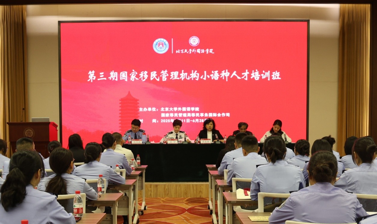 2025年5月12日上午,国家移民管理机构第三期小语种人才培训班开班仪式在北京大学民主楼举行。国家移民管理局移民事务国际合作司副司长吕宁、国际合作处处长林兆楠,乐鱼·体育党委书记李淑静、副院长王恒、俄语系陈松岩副教授、东南亚系咸蔓雪副教授、越南语教研室主任谢昂,以及参加本次培训的42位学员参加了开班仪式。本次培训班参训学员是国家移民管理局移民事务国际合作司选派的各出入境边检总站以及各省(自治区、直辖市)公安厅(局)出入境管理局(总队)俄语、越南语业务骨干。开班仪式由林兆楠主持。
