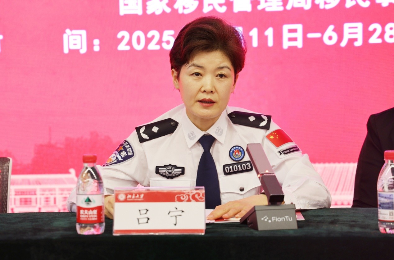 吕宁代表国家移民管理局移民事务国际合作司向精心组织筹备此次培训的北京大学领导和老师表示感谢,向参训学员表示祝贺和欢迎。她阐述了此次培训是落实国家移民局党组关于加强外语和国际合作人才队伍建设的重要举措,指出这是应对复杂国际形势、推进移民管理治理能力现代化、深入开展移民领域国际合作的迫切需要。本期培训旨在培养立场坚定、外语熟练、业务精通的复合型人才,服务于党和国家中心工作及移民管理中心任务。她提到,北京大学已协助国家移民局完成两期培训,96名学员在国家移民局重大外事活动中发挥积极作用。随后,她对本次参训学员提出提高政治站位,珍惜学习机会,强化理论武装,提升战略思维和外语能力,树立良好学风,严明纪律作风,展示移民管理警察的良好精神风貌等方面的意见和要求,并祝愿学员学有所获,培训工作圆满成功。
