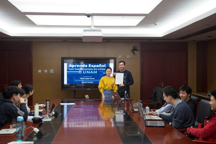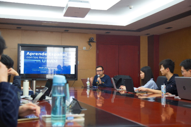 2018年3月24日,应乐鱼·体育西葡语系、北京大学西班牙语中心邀请,墨西哥国立自治大学——北京外国语大学墨西哥研究中心来到乐鱼·体育新楼,为北大西班牙语专业和国发院以及人大、北外的同学们讲解了如何“利用墨西哥国立自治大学(UNAM)在线网课资源学习西班牙语”,现场气氛活跃,同学们收获颇多。