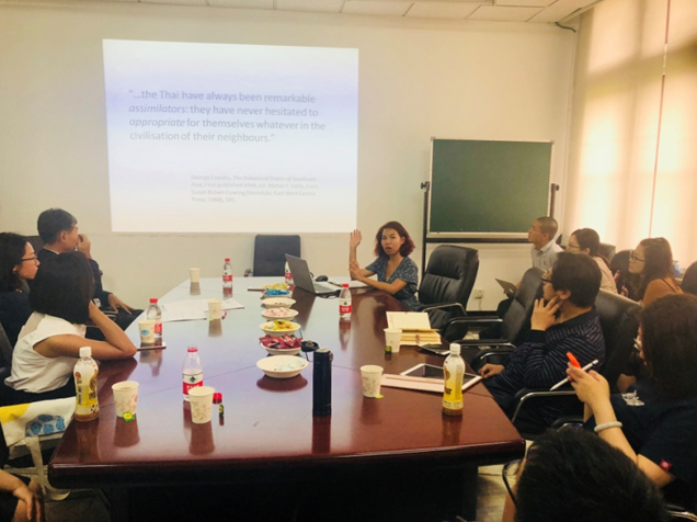 2018年5月26日,泰国艺术大学考古学院艺术史系系主任荣若•坦戎让副教授一行7人到乐鱼·体育访问并同东南亚系师生代表交流座谈。