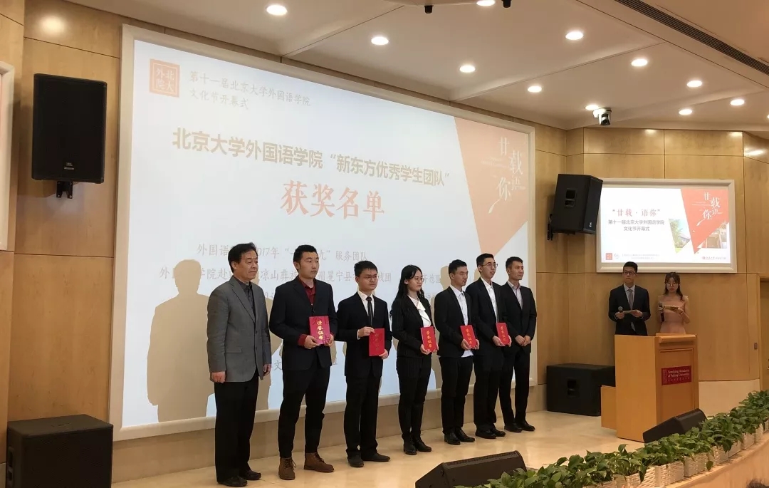 付志明、宋扬为“新东方优秀学生团队”获奖团队颁奖