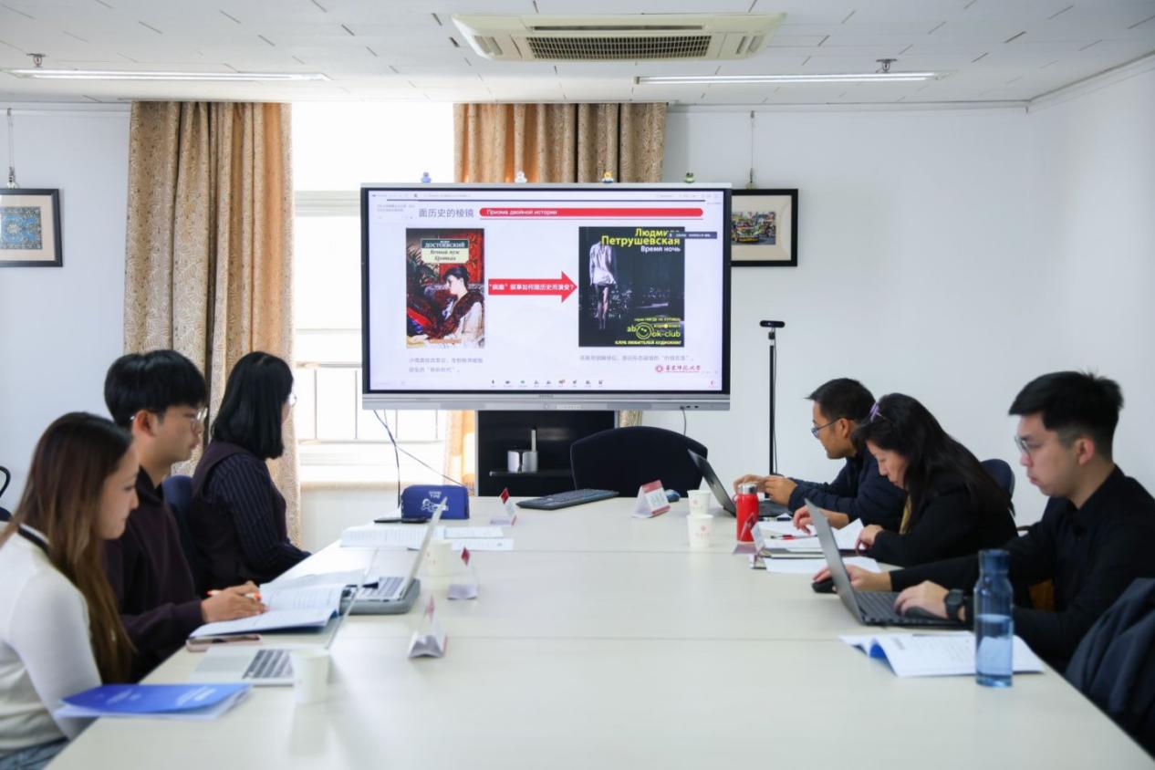 第一分会场为文化研究,由俄语系副系主任王帅老师与博士后王梓老师主持,主要点评专家为北京语言大学管玉红教授、北京大学王彦秋副教授和南开大学阎国栋教授、北京大学刘浩副教授。该会场的报告涉及跨文化对话、经典重构、译介传播等多个分支的研究。