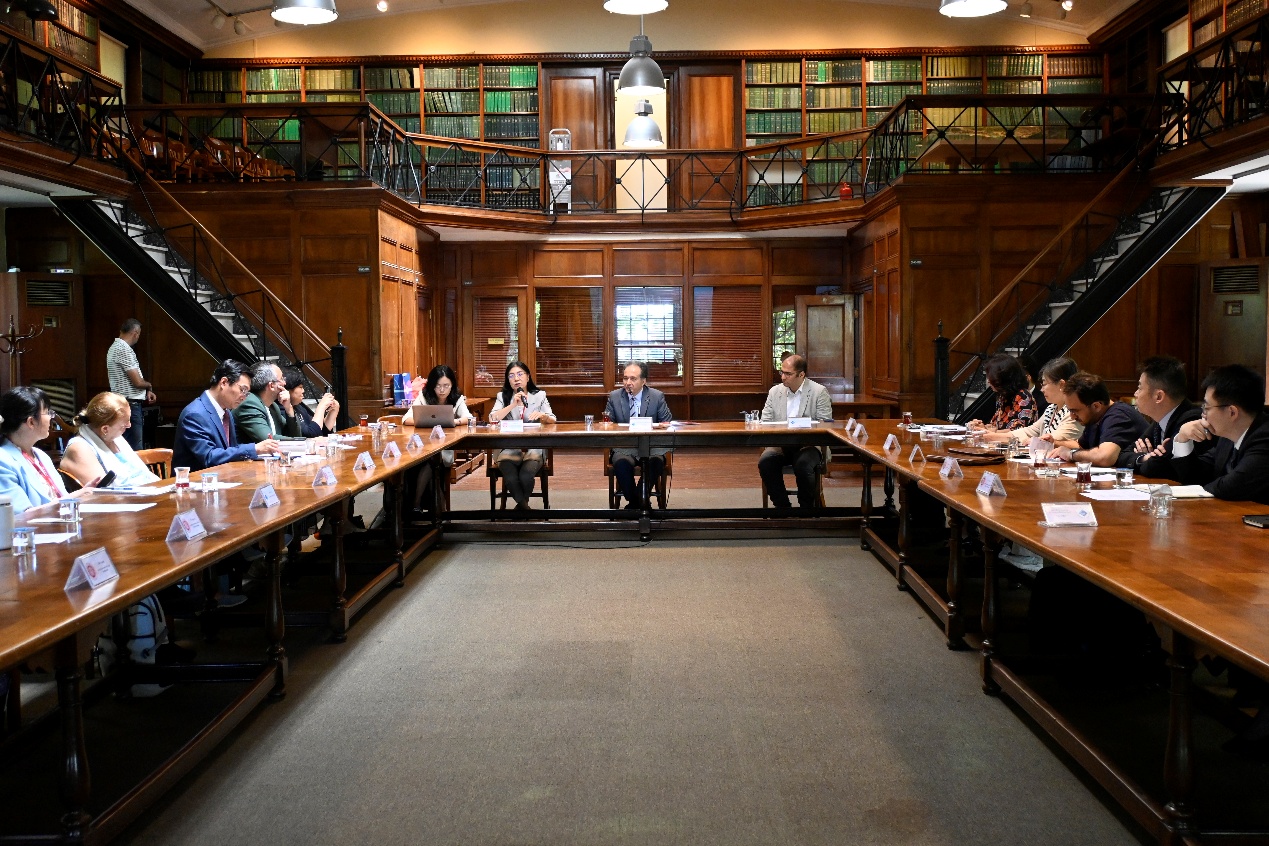 7月10日,调研团先后参访紫金矿业海外总部和中国电建欧亚总部。紫金矿业负责人详细介绍了企业在全球范围内的投资布局与运营管理,重点分享了在资源开发、环境保护、社区责任等方面的实践经验。中国电建负责人则围绕区域内重点工程项目,介绍了企业在复杂地理环境中开展基础设施建设、能源开发的技术创新和风险管控,强调了绿色发展理念及本地化合作模式。调研团成员与两家企业的管理团队就“一带一路”背景下的矿业产业链拓展、跨国工程合作、项目融资、本地人才培养以及绿色转型等议题进行了深入交流,进一步了解了中资企业“走出去”过程中的机遇与挑战。