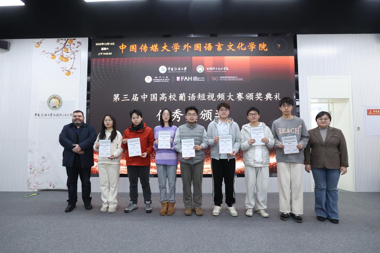 12月13日,第三届中国高校葡语短视频大赛颁奖活动在中国传媒大学举行,北京大学葡语专业获奖人数在参赛高校中居于首位,相关获奖者均为大二同学。其中,董泽泉、陈汝嘉、赵梓淇获二等奖;顾浩琳、刘亚轩、田若岚、谭韵竹、龙佳进、张嘉文、王俊沣获优秀奖。获奖作品围绕“科创中国”主题,将语言学习与创意表达相结合,在内容策划、叙事结构与视听呈现等方面体现出较强的综合素养与传播意识。