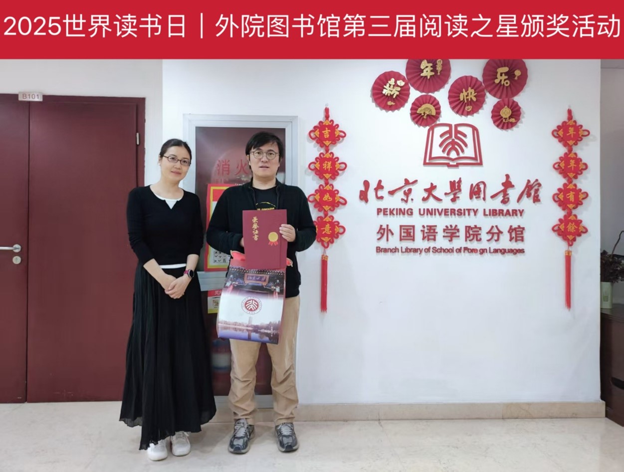 “春风拂卷香,阅读正当时。” 在第30个世界读书日到来之际,图书分馆于近日举行第三届 “阅读之星” 评选颁奖仪式,表彰2024年度借阅量名列前茅的师生读者。西班牙语系教师范晔、博士研究生吴振宇、本科生吴天鹏三位师生分别斩获教职工组、研究生组、本科生组“阅读之星”称号。