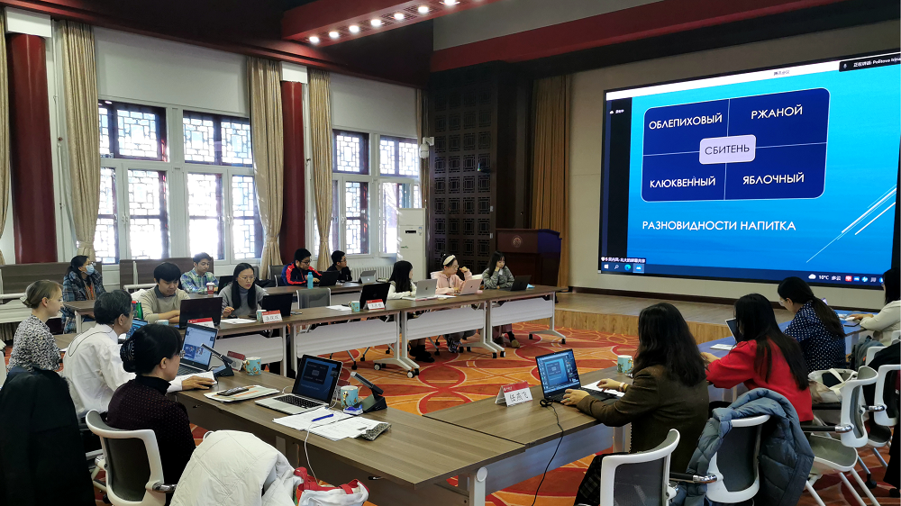 周海燕副教授回顾了中国俄语教学的悠久历史:介绍了中国最早的俄语教学始于清朝康熙年间的俄罗斯文馆,1862年开办京师同文馆,后俄罗斯文馆并入京师大学堂,再到1920年北京大学俄文学系成立,生动展现了北京大学俄罗斯语言文学系的发展历程。她就中国俄语学生的学习动机和自我认同进行了系统阐述:从研究结果所呈现的动机类型来看,中国学生选择俄语专业的原因与个人文化情结、内在兴趣、就业前景、外部建议等因素密切相关;中国俄语学生在学习俄语后所呈现出的自我认同总体呈积极反馈,这一研究对于教学实践具有重要意义。周老师还向与会师生展示了北京大学的四季美景,诚挚邀请各位老师在疫情过后来到北京,来到北大。