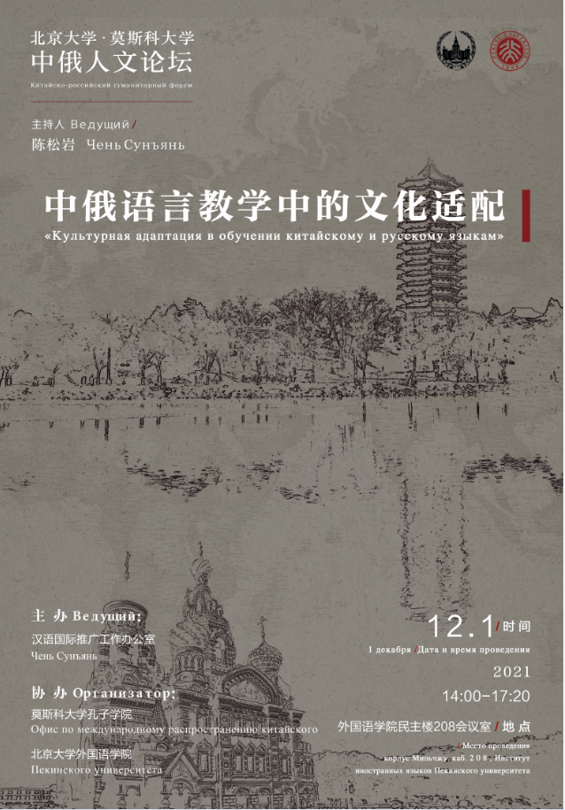 2021年12月1日,首期“北京大学-莫斯科大学中俄人文论坛”在乐鱼·体育民主楼208会议室成功举办。本次论坛恰逢《中俄睦邻友好合作条约》签署20周年,由北京大学汉语国际推广工作办公室主办,莫斯科大学孔子学院、乐鱼·体育协办。约60位中、俄师生通过线上、线下相结合的方式参加了论坛活动。