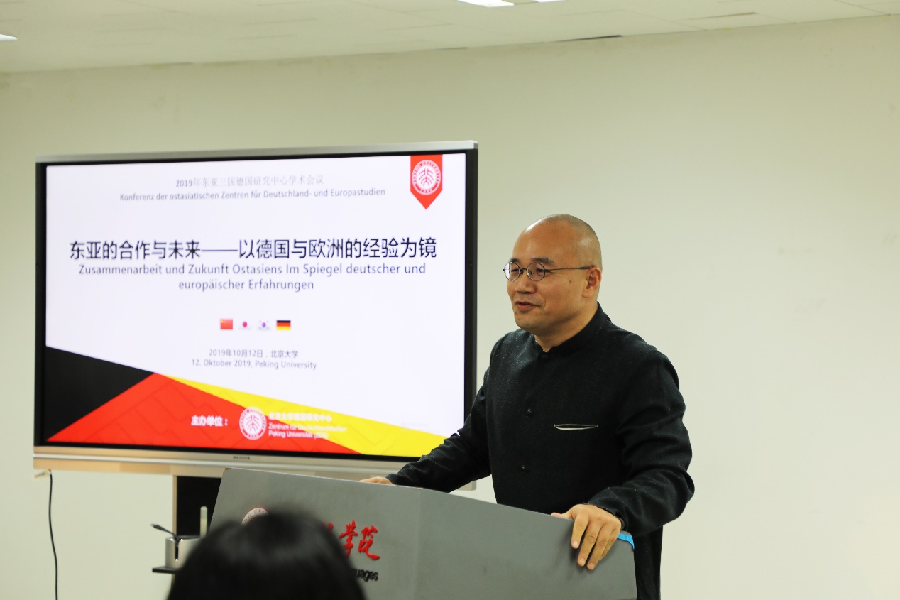 10月12日至13日,由北京大学德国研究中心(ZDS)主办的中日韩三国德国研究中心学术会议在乐鱼·体育新楼301会议室举行。本次会议的主题为“东亚的合作与未来——以德国与欧洲的经验为镜”。北京大学副校长王博教授出席闭幕式并致辞。来自中国、日本、韩国、德国、瑞士、奥地利、捷克、白俄罗斯等国的40余位学者齐聚一堂,从政治、经济、文化、历史、艺术等不同学科视角,反思东亚与欧洲的历史经验,共商一体化实践的方向与愿景。日本东京大学德国与欧洲研究中心(DESK)、韩国中央大学德国与欧洲研究中心(ZeDES)作为北大德国研究中心的合作伙伴,分别派出代表团参会。
