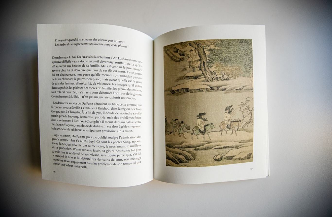 创作之中,从中国史实出发,勒克莱齐奥对书中的排章布篇遵循了时间逻辑:从盛唐时期的李白杜甫开始,到中唐时期的白居易,再到晚唐时期的李商隐,依循时光徐徐而下,最终以李商隐的《天涯》一诗收尾,走到“天涯”而尽,完成一趟完整的历史航路。
