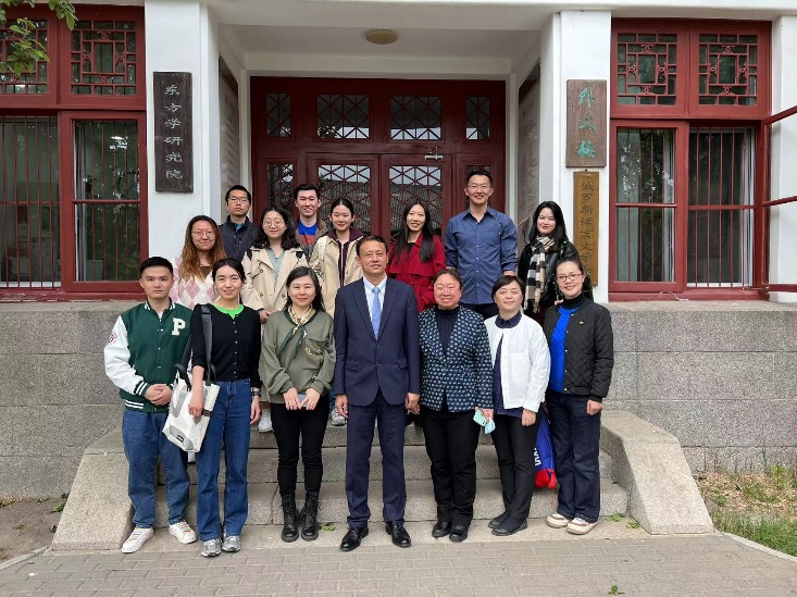 活动结束后,李旭大参赞、韩志红处长等与亚非系师生于乐鱼·体育外文楼前合影留念