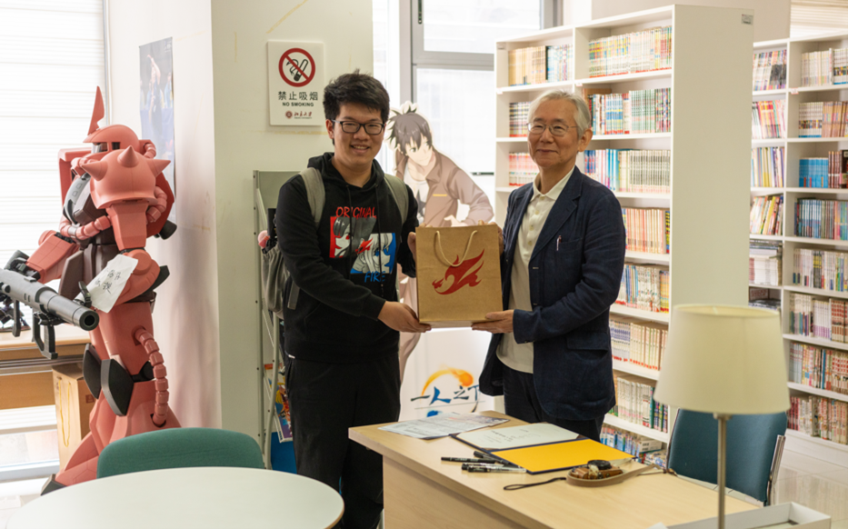 座谈交流结束后,代表团一行参观了位于外院新楼地下二层的北京大学漫画图书阅览室,并在留言簿上写下了对北大与元火动漫社的寄语。