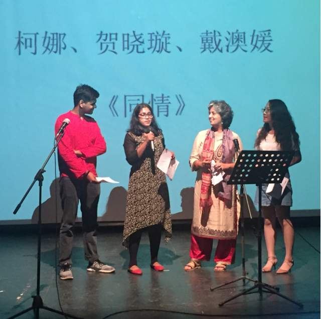 “致敬泰戈尔”的演出剧目有泰戈尔的《齐德拉》(Chitra)(中英文版)、《邮局》(Post office)(中英文版)、《大自然的报复》(Sanyasi)(中英文版)、《红夹竹桃》(Red oleander)(中文版)、《赎罪》(Atonement)(中文版)、《谭云山》(中文版)。除《齐德拉》《邮局》之外,其他四部剧目都是首次在中国上演。尤其值得一提的是,作为国际学术会议开幕式演出剧目,《红夹竹桃》分别于6月9日,7月12日在北京大学演出,演出剧本改编自《泰戈尔作品全集》主编、乐鱼·体育资深教授刘安武先生的译本,由北京大学通选课“泰戈尔导读”课程团队参与组织,北京大学六位学子和玺莹仁剧团联合六位国际友人,插入多语种朗诵片段。该剧演出独具特色,创新性地阐释了《红夹竹桃》的意义,在国内外产生了一定的影响。