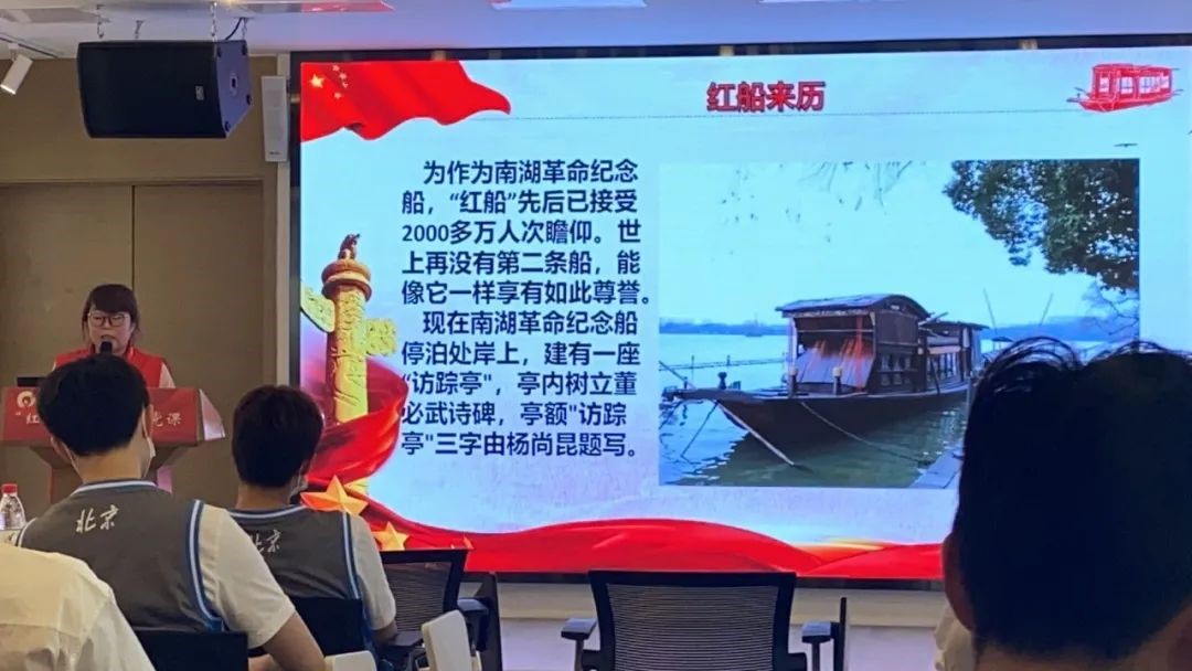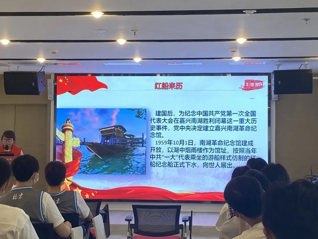 2021年正值中国共产党建党100周年。“红船精神”集中体现了中国共产党的建党精神,是中国共产党革命精神之源,昭示着中国共产党人的初心和使命。为号召支部青年不忘爱国初心、坚定信仰、学习红船精神、了解中国共产党成立的艰辛历程、继承红色基因,2021年6月4日下午14时,北京大学2020级菲律宾语团支部共同前往中关村街道世纪科贸大厦·社区青年汇党建e站,开展以“感悟红船精神,继承红色基因——庆祝建党100周年”为主题的学习活动。参与本次活动的还有首钢女篮的队员和来自北京林业大学的学生。