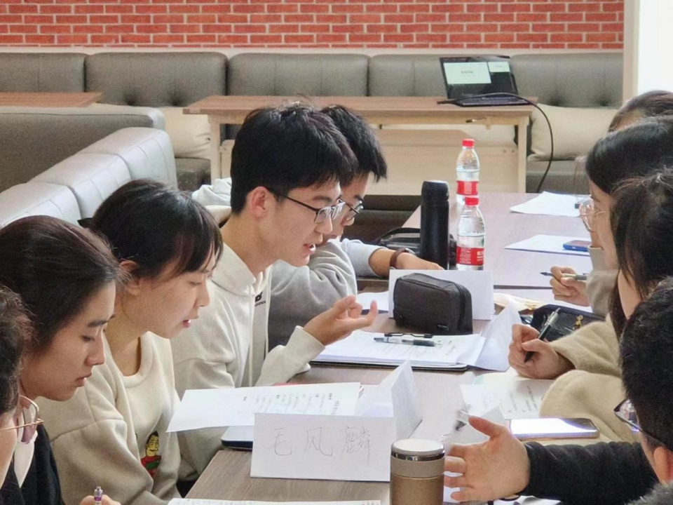 讲解环节结束后,同学们按照“体制内”和“体制外”两个不同的求职方向分成三个小组进行模拟面试。三组同学分别就“城市文明养狗问题”和“唐僧西天取经选人排序”两个题目展开讨论。一小时后,三组同学均顺利形成统一意见,按组进行团队汇报。面试期间,面试官从反应灵敏性、发言主动性、概括准确性、氛围营造力、待人尊重感等维度,对同学们的表现进行了评估。