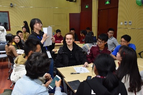 活动开始,中外同学自由落座,按照语种与兴趣寻找适合的语伴。现场先后进行了两轮破冰活动,包含多个趣味游戏——“你画我猜”,线条的简单勾画中突破文化壁垒,带起阵阵欢笑,中外同学们在图画的传递中体验文化的差异与碰撞;“纸杯接球”,球在空中划过的弧线如同搭建起的友谊之桥;“寂静的呐喊”,无声的唇语提醒着我们倾听的重要性,努力表达的表情让大家嘴角上扬的同时也拉进了心与心的距离……