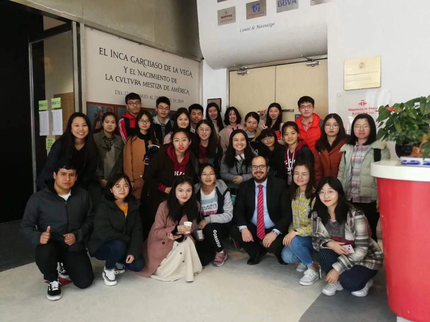 下午二时许,全体参访学生在塞万提斯学院集合。在秘鲁大使馆文化处官员伊格纳西奥·巴尔加斯(Ignacio Vargas)的带领下,西语专业学生参观了塞万提斯学院与秘鲁大使馆联合举办的《印卡·加西拉索·德拉维加与美洲「梅斯蒂索」文化的诞生》展览。