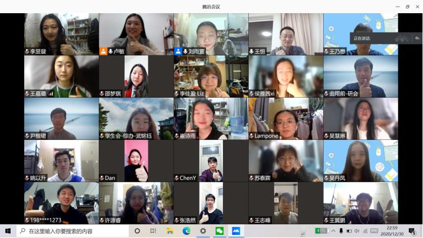 2020年12月31日晚,乐鱼·体育顺利举行了2020年团学工作交流述职会。北大外院团委、学生会、研究生会、新媒体中心四个学生组织骨干成员及院党委副书记王恒,团委书记卢敏,团委副书记于丹、李佳盈共55人参加会议。此外,因北京市疫情防控需要,此次述职大会以线上会议的形式展开。本次会议由团委学生副书记刘雨萱主持。