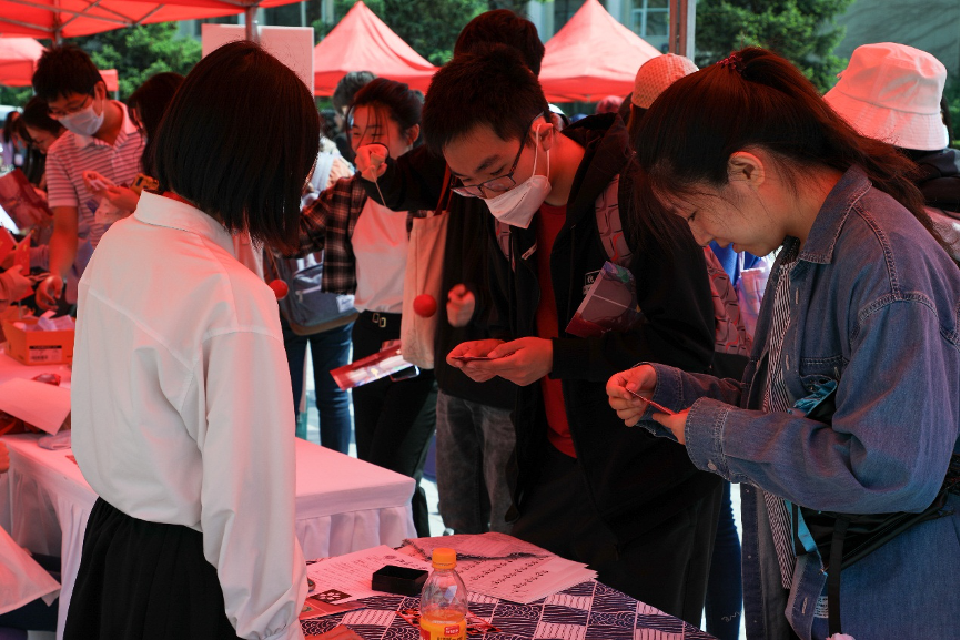 本次文化节活动共设有兑奖、美食、游戏、拍照四个区域,吸引了来自全校同学的关注,活动区域人来人往。