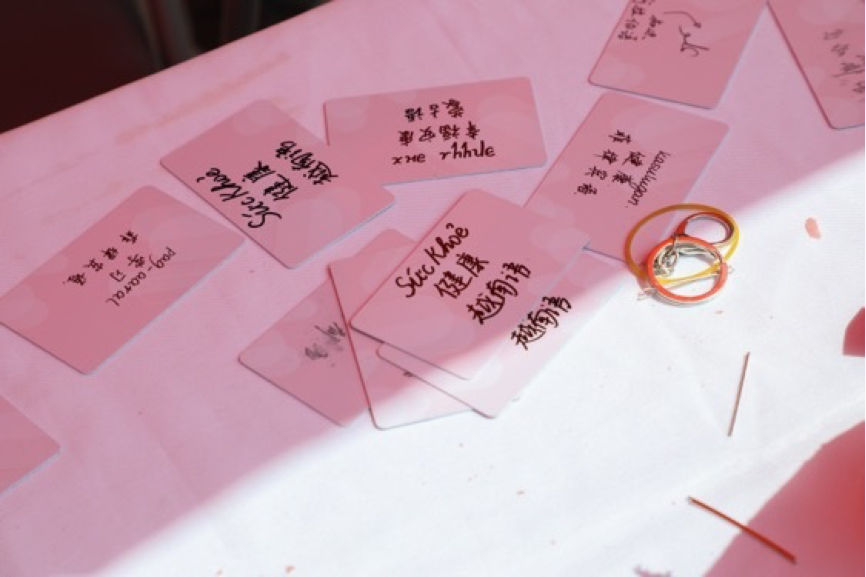 兑奖区域为同学们准备了由乐鱼·体育学生会和新媒体中心精心设计的多种文创产品,包括卡套、多语种祝福卡片、明信片、电脑贴纸、马克杯、帆布袋等。这些文创产品具有鲜明的外院特色,用不同的语言写满对同学们的祝福,展现了丰富多彩的世界文化,同时也传递了满满的爱。