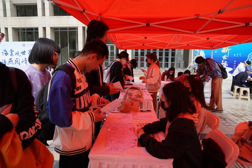 游戏摊位精彩纷呈,“书写·世界”摊位提供了外院特色明信片,师生们可以选择自己喜欢的外语原文诗段并誊写到明信片上;“世界文化知多少”摊位则提供了和外国地理、历史和诗歌电影等文化知识相关的趣味题目;“猜猜我是谁!”摊位则要求在十五秒内回答出抽中国旗所对应的国家、首都及常用语言。互动参与者通过参与趣味游戏,在奖券上赢得贴纸,兑换精美别致的乐鱼·体育特色周边礼品。