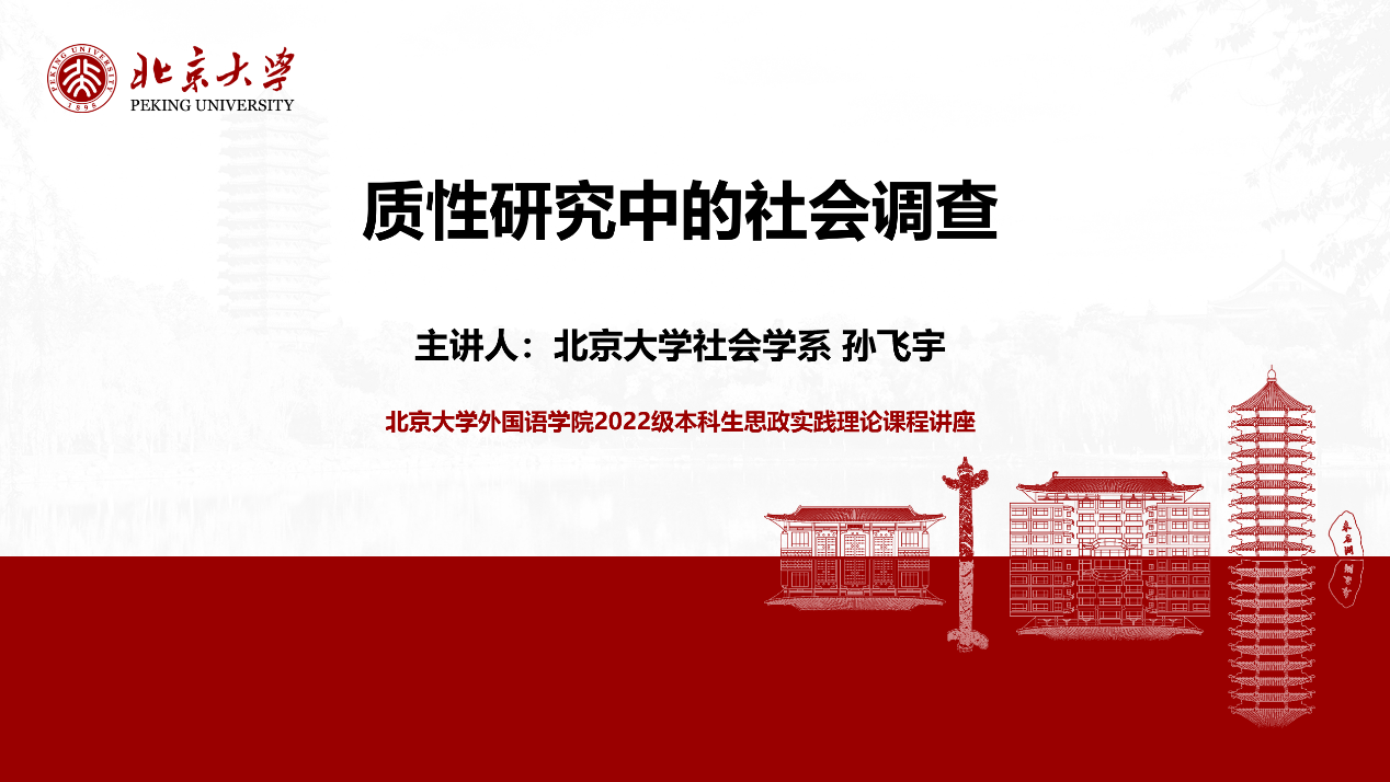 5月14日晚,北京大学元培学院副院长、社会学系副教授孙飞宇在二教203教室为乐鱼·体育的同学们带来了题为“质性研究中的社会调查”的思政实践理论讲座。乐鱼·体育2022级全体本科生共同参与学习,讲座由2022级本科生袁哲主持。