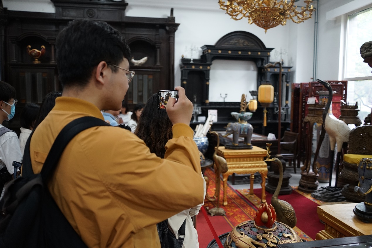 随后,实践团赴“会都”——北京雁栖湖国际会展中心参观。雁栖湖国际会议中心曾承办2014年APEC峰会以及首届与第二届“一带一路”国际合作高峰论坛圆桌峰会。师生一行跟随讲解员参观集贤厅,聆听讲解员讲解集贤厅室内设计的点滴思考与幕后故事,通过室内装潢与陈设,亲身感受峰会盛况。置身集贤厅内,汉唐气象与明清气派并举,古色古香与现代风格交融,融通古今,博雅东西,共同构成我国外交接待空间与国家礼仪空间的新地标,迸发出现代中国的文化自信与壮阔气势。建筑之美彰显人文之美,实践团师生在通过视觉、听觉近距离感受中国传统建筑的文化底蕴与艺术魅力的同时,也愈发坚定行语言专业所长、做文化交流使者的决心。国际盛事与大国外交呼唤扎根本土、放眼世界的复合型语言人才,乐鱼·体育师生大有可为也必将大有作为。