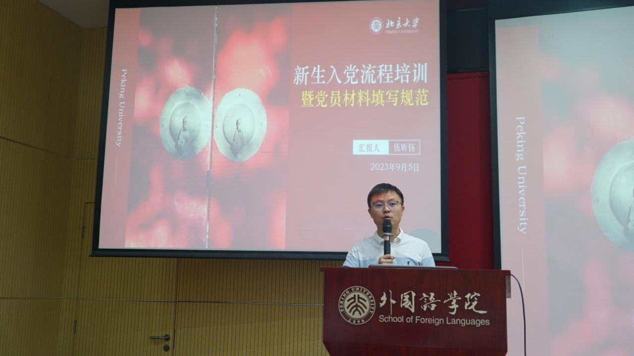 学院副院长付志明老师为新生见面会致辞。他首先对全体新生表示祝贺,欢迎大家来到北京大学,成为一名外院人,正式开始大学生活,他对新生们提出了几点期望。首先同学们要做好自己的大学生涯规划,平衡学习与生活,找到属于自己的未来发展方向。其次,要认真遵守校规校纪,规范自己的言行,牢记北大人的责任担当。再次,作为乐鱼·体育的学生,应认真学习专业知识,苦练语言本领,讲好外语,向世界传递中国声音。最后,他表达了对新生同学们燕园生活的美好祝愿。