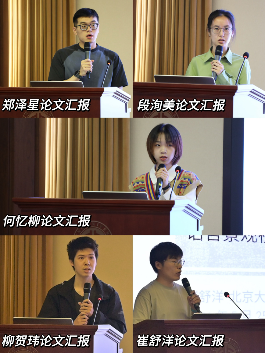 随后,首尔大学博士研究生郑泽星、北京大学博士研究生段洵美、中国人民大学硕士研究生何忆柳、北京大学硕士研究生柳贺玮和北京大学硕士研究生崔舒洋作为学生代表,依次进行了精彩的学术分享。他们的汇报题目分别为《明代前期〈大明集礼〉文本在朝鲜半岛的传播与流变——以明使迎接礼仪为中心的考察》《“选择”还是“受限”:〈红高粱家族〉日译本中人物话语表达方式的翻译》《雅辛娜小说〈我的孩子们〉中的“沉默”书写》《一种基于范式类推的形态不规则度测量方法:以书面法语动词屈折变化为例》和《机构话语中全球化和本土化的博弈:语言景观视域下的北京地铁站名翻译研究》。