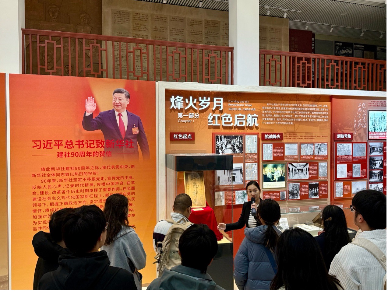师生移步向前,透过一篇篇报道、一幅幅照片,感受到了传播中国声音、赓续红色血脉的崇高使命。