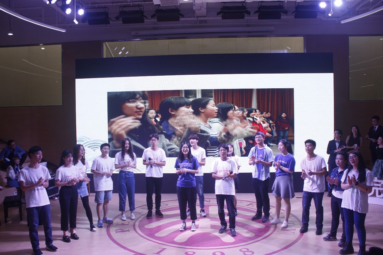 “人·薪火相承”板块,褚孝睿同学铿锵的诗诵展现出新时代外院人的朝气,12种语言演绎的《燕园情》歌声将开幕式推向高潮。