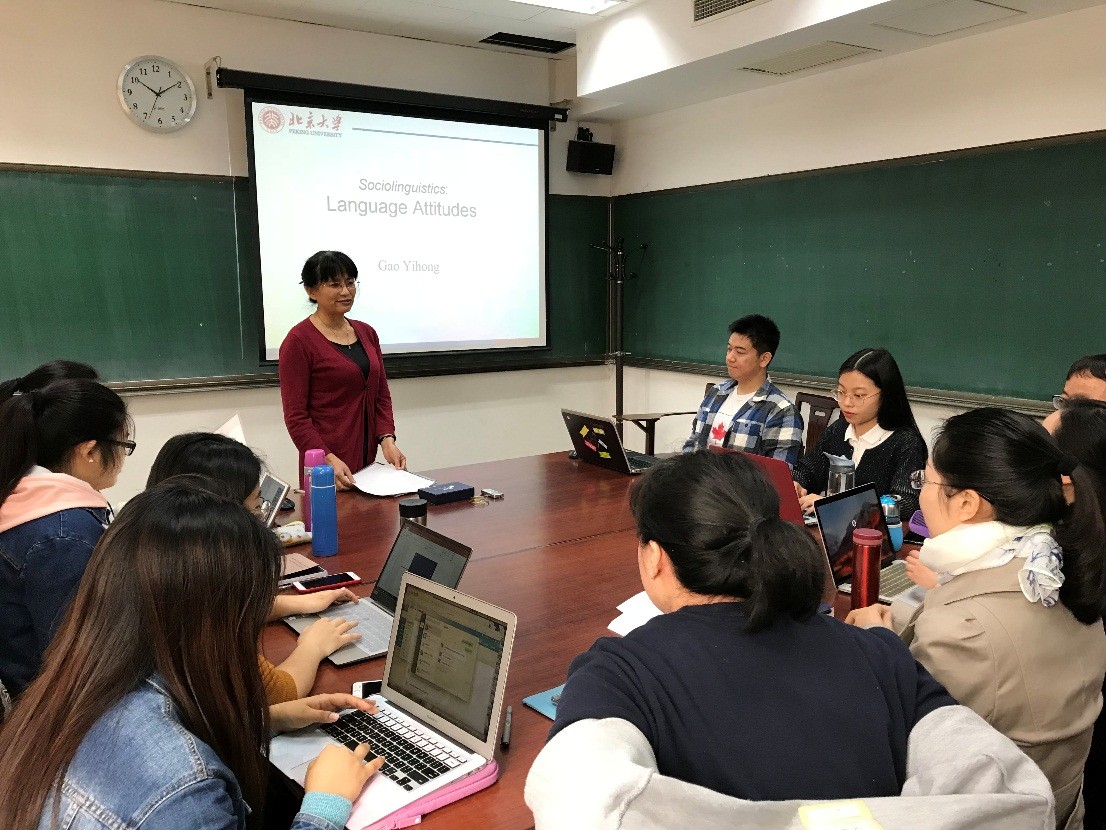3月29日上午,乐鱼·体育教授、博士生导师,外国语言学及应用语言学研究所所长高一虹在文史楼215举办开放课堂。高一虹在北京大学第二十二届“我爱我师——最受学生爱戴的老师暨‘十佳教师’系列评选活动”中获评“十佳教师”称号,本次课堂开放以“社会语言学”为讲授和探讨主题,吸引了诸多学生和青年教师,亲临现场感受其课堂魅力。