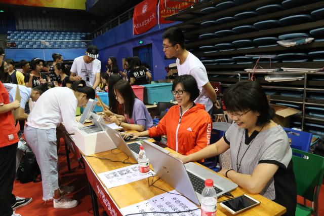 上午6:15,天刚蒙蒙亮,在学院师生共同努力下,温馨而有序的外院迎新接待站布置完毕。乐鱼·体育副院长付志明、党委副书记王恒、教务办公室和学生工作办公室的老师以及学生志愿者们,在邱德拔体育馆内的本科生外院迎新接待站等待着新同学们的到来。