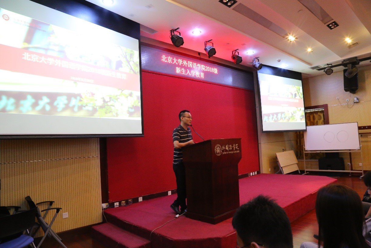 8月30日晚18:00,外院2018级本科新生入学教育在外院新楼501报告厅举行。乐鱼·体育院长宁琦、副院长付志明、教务办主任崔桂红以及教务办、学工办的多位老师出席会议。会议由院党委副书记王恒主持。