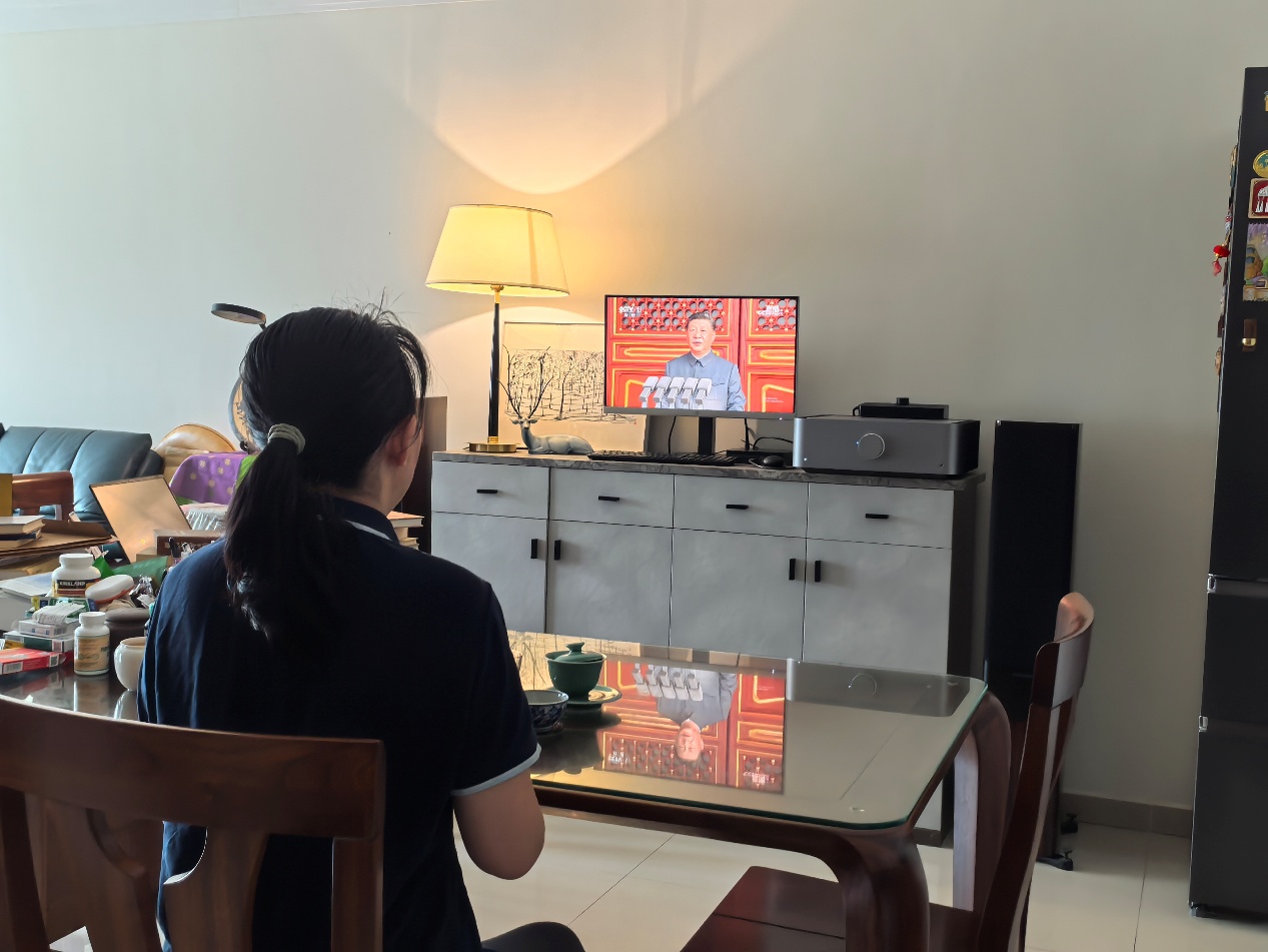外院教师在家中观看大会直播