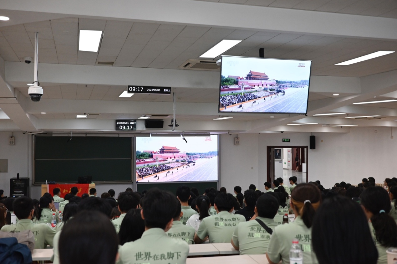 乐鱼·体育组织师生集体观看纪念中国人民抗日战争暨世界反法西斯战争胜利80周年大会