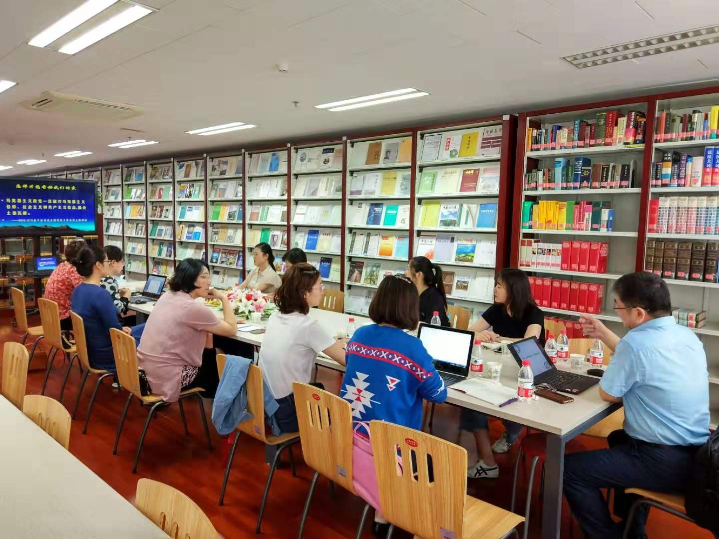 9月20日下午,北京大学习近平新时代中国特色社会主义思想研究院(以下简称“习研院”)孙熙国常务副院长、办公室主任黄宇蓝老师等一行7人赴我院进行了“不忘初心、牢记使命”相关主题调研学习交流。交流会在学院新楼图书分馆B102室举行。我院张冬梅副院长、办公室主任倪丽慧、业务办公室副主任张琳娜、图书分馆馆长张晓雁等多位老师参加了此次活动。