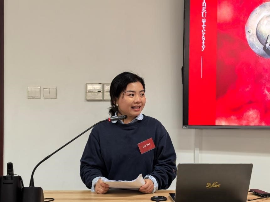座谈会在外院新楼B135室举行,由泰语专业研究生熊珊儿担任主持人。熊燃老师首先代表北大泰语专业向泰国七世王学院的再次到访表示欢迎,并向来宾介绍了近年来泰语专业与泰国高校师生开展文化交流的情况。接下来,泰语专业2024级硕士生罗燕介绍了北京大学的历史与现状。2022级本科生代表苏煜分享了暑期赴泰国朱拉隆功大学交流实践的经历以及学习泰语的感受。随后,熊燃老师与道诺伊·素提尼帕蓬女士互赠礼品。
